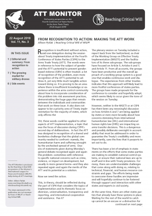 However, neither in the WGETI or at CSP4 has there been any meaningful discussion on how Articles 6 and 7 are being applied by states or even more broadly about how concerns stemming from international humanitarian law (IHL) and international human rights law (IHRL) are impacting on arms transfer decisions. This is a dangerous and possibly deliberate oversight in accountability that must be addressed in order to guarantee the Treaty’s credibility and more importantly, save the lives that it purports to set out to do.