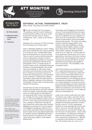 The main message from the Japanese presidency over the Fourth Conference of States Parties (CSP4) to the Arms Trade Treaty (ATT) has been that of “Action, Transparency, Trust”, a play on the Treaty’s acronym.