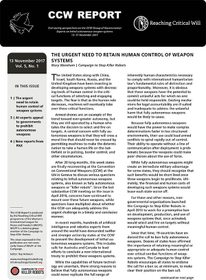 After 20 long months, this week states are finally reconvening at the Convention on Conventional Weapons (CCW) at the UN in Geneva to discuss serious questions relating to lethal autonomous weapons systems, also known as fully autonomous weapons or “killer robots”. Since the last substantive CCW meeting on the issue in April 2016, concerns have continued to mount over these future weapons, while questions have multiplied about whether the CCW can adequately address this urgent challenge in a timely and conclusive manner.