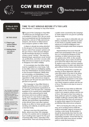 The strong interest that countries are showing in these diplomatic talks indicates their desire to be seen to be doing “something” about this concern. Those CCW meetings have shown that there is now widespread agreement on the need to retain some form of human control over future weapons systems and the use of force. The time is now ripe to move to negotiations.