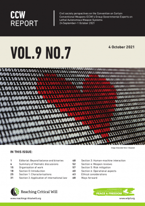 As participants reviewed the Chair’s revised paper—which contains what might be turned into recommendations that the GGE submits to the CCW Review Conference in December—an alarming pattern developed. A small number of states called for removing references to human rights and international human rights law; to human dignity; to ethical considerations; to algorithmic bias; to the word “obligations;” and to anything they perceived as a “new commitment”. They not only rejected anything they felt could constrain their development and use of AWS, but they also rejected the very idea that ethics, morality, rights, dignity, or bias have anything to do with programming machines to surveil, attack, and kill human beings.
