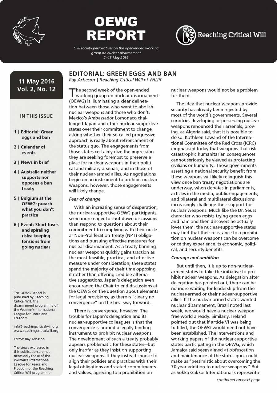 But until then, it is up to non-nuclear-armed states to take the initiative to prohibit nuclear weapons. As delegation after delegation has pointed out, there can be no more waiting for leadership from the nuclear-armed or their nuclear-supportive allies. If the nuclear-armed states wanted nuclear disarmament, Brazil noted last week, we would have a nuclear weapon free world already. Similarly, Ireland pointed out that if article VI was being fulfilled, the OEWG would need not have been established. The interventions and working papers of the nuclear-supportive states participating in the OEWG, which Jamaica said seem aimed at obfuscation and maintenance of the status quo, could make us “pessimistic about overcoming the 70 year addiction to nuclear weapons.” But as Sokka Gakkai International’s representative said, those who are ready for a nuclear weapon free world are ready to ban nuclear weapons.