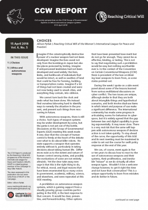 With autonomous weapons, there is still a choice. Such types of weapon systems may be under development by some, but the genie is not yet out of the bottle. Discussions at the Group of Governmental Experts (GGE) meeting this week made it very clear that the concept of human control is firmly at the heart of the debate over what to do about killer robots. No state supports a weapon that operates entirely without it, particularly in taking decisions about taking human life. Differences exist as to the extent and nature of human control among states, and possibly the motivations of some are not entirely altruistic. Yet the clear take away message is that this is the right thing to do, for ethical, moral, and legal reasons that have been enumerated by so many voices in government, academia, military, science, and elsewhere, and were reperated at this GGE meeting.