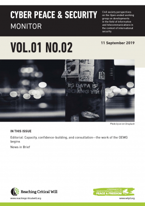 WILPF understands the militarisation of cyber space as an expansion of the same patriarchal structures of power that perpetuate violence and repression in the offline world. While this precise gender analysis was not articulated during the general exchange, Sweden, Canada, the Association for Progressive Communications, and WILPF highlighted the unique challenges of online gender-based violence and Australia and New Zealand called for stronger participation of women in ICT-related discussions. This builds on the upsurge of gender awareness occurring in other parts of the disarmament system.