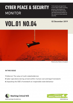 “This is the first time in the history of UN ICT discussions in the context of international security that such an inclusive and global multi-stakeholder meeting is held to discuss cyber threats and challenges and how to address them,” notes a joint letter from the two chairpersons. What will be important going forward is how the expertise and information provided at this meeting is used by states in the formal work of the OEWG. This convening of a meeting like this was mandated in the same UN General Assembly resolution that created the OEWG, but it does have an informal status and is being independently and voluntarily resourced and chaired. A report of this meeting will be presented from the chair during the OEWG’s next formal session in February 2020, at which non-governmental participation could again be restricted. This publication will produce a final report at the end of the intersessional to capture the diversity of expertise, views, and concerns presented. The hope is that this is the start, and not the end, of a more robustly inclusive UN dialogue on cyber security writ large. The ubiquity of ICTs in each of our lives, and our shared vulnerability, makes us all stakeholders in their protection and in the preservation of a peaceful cyber space.