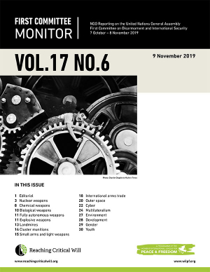 In the end, for now, First Committee is still standing. It will meet in New York in 2020, with the efforts to get agreement to move it to Geneva or Vienna next year having failed. The US government’s denial of visas to certain delegations, however, remains a critical issue. The Committee on Relations with the Host Country issued a report calling upon the host country to ensure entry visas to all representatives of member states and members of the Secretariat and to review its differing processes of granting visas to personnel of certain missions. But as long as this problem persists, so will the procedural headaches of engaging in substantive work at New York-based meetings. Russia warned as much in its many interventions on the subject. And for this, the US accused Russia of taking the disarmament machinery hostage. In a strongly-worded excoriation of amendments Russia tabled for a resolution on the Disarmament Commission, which aimed to tie the commencement of its 2020 session to the issuance of visas, the US argued that if this kind of “hostage taking” is tolerated, “it will spell the beginning of the end of the United Nations” and we will “never get the UN back.” (See the article on multilateralism on for details.)