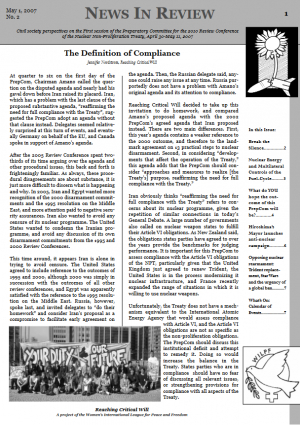 Unfortunately, the Treaty does not have a mechanism equivalent to the International Atomic Energy Agency that would assess compliance with Article VI, and the Article VI obligations are not as specific as the non-proliferation obligations. The PrepCom should discuss this institutional deficit and attempt to remedy it. Doing so would increase the balance in the Treaty. States parties who are in compliance should have no fear of discussing all relevant issues, or strengthening provisions for compliance with all aspects of the Treaty.