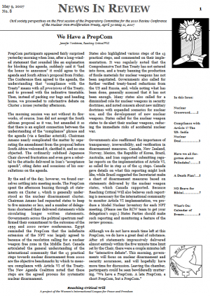 PrepCom participants appeared fairly surprised yesterday morning when Iran, after a long-winded statement that sounded like an explanation for blocking the agenda, suddenly said it “had the honor to announce” it could agree to the agenda and South Africa's proposal from Friday. The Conference then agreed to the agenda, the understanding that “compliance with the Treaty” means with all provisions of the Treaty, and to proceed with the indicative timetable. Then, instead of packing our bags and heading home, we proceeded to substantive debate on Cluster 1 issues yesterday afternoon.