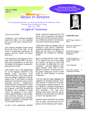 So what will this highly anticipated agenda look like? Will the 2000 Final Document, and the 13 Steps contained within it, be excluded all together? Will States parties have given up the struggle to ensure that past hardwon agreements focus and direct future negotiations? Will enough time be spent on critical issues of the Treaty, without subsidiary bodies established to focus the diplomats’ attention on them?