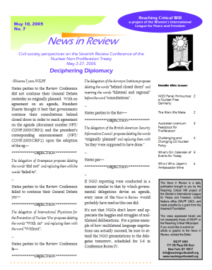 If NGO reporting were conducted in a manner similar to that by which govern-mental delegations devise an agenda, every issue of the News in Review would probably have read as this one did. It’s not that NGOs don’t know and ap-preciate the haggles and struggles of mul-tilateral deliberations. For a prime exam-ple of how multilateral language negotia-tions can actually succeed, be sure to at-tend the NGO presentations to the dele-gates tomorrow, scheduled for 3-6 in Conference Room IV. May 11, 2005.
