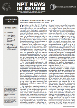 As the US delegation said, the NPT is only as strong as the parties’ willingness to maintain its integrity. It is this that should guide the discourse on cases of proliferation concern. No country should be able to hide behind the letter of the Treaty to develop a nuclear weapons programme, and all countries should adopt the additional protocol in order to strengthen the safeguards regime. At the same time, however, no country should be subject to discriminatory reinterpretations of state party obligations. Furthermore, the desire to maintain the integrity of the Treaty should also guide comprehensive investigations into nuclear weapon states’ (non-)compliance with article VI, which is just as critical for the integrity of the Treaty.