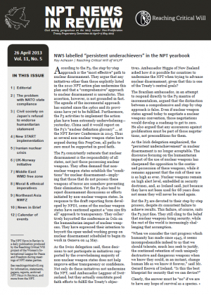 The failure of the nuclear weapon states (NWS) to comply with their disarmament obligations is widely recognized as the key challenge to the NPT’s credibility. Most NPT states parties believe that the NWS have the primary responsibility to ensure the legitimacy of the Treaty by fulfilling their commitments. While some NWS, such as France, argue that proliferation slows down disarmament, the New Agenda Coalition and others have argued for years that proliferation is driven by the lack of disarmament.
