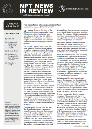 The scene of the final day of the second NPT PrepCom provided a snapshot of the NPT process itself. Marked by long waits and dissatisfied states parties (especially the non-nuclear weapon states), the final Friday was an anticlimactic finish to two weeks of discussions that largely went nowhere. This is a typical outcome of NPT meetings, because the review cycle is a process that favours the status quo by pitting possible forward momentum against maintaining the “stability” of the “regime”. But this status quo is seen as increasingly untenable to the majority of states parties.