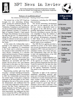 The agenda is the same as the one used at the 2000 Review Conference, with a minor technical update: in paragraph 16, the phrase “and the final document of the 2000 Review Conference” has been added. The text of the agenda is available at www.reachingcriticalwill.org. The PrepCom also moved quickly though other procedural matters related to the 2010 RevCon (see the News in Brief, page 10).