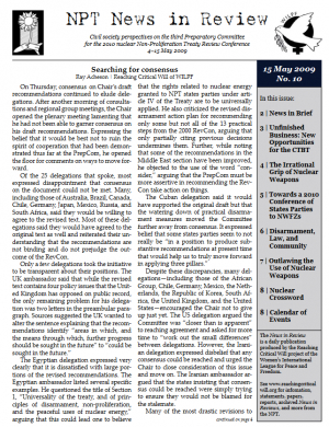 Paradoxically on the surface, this result came as a relief to many delegations. While the vast majority of states parties seemed ready to accept either the first or second drafts, no one was entirely content with either. Rather than becoming stuck with an imperfect text, delegations will have the freedom in 2010 to negotiate and reach agreement with a clean slate on the many fraught issues facing the NPT regime.