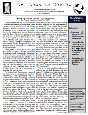 Government officials from the 189 countries that are party to the nuclear Non-Proliferation Treaty (NPT) are gathered at the United Nations to review the implementation of the world’s most widely adhered to multilateral disarmament agreement. They are joined by well over a thousand non-governmental representatives from 121 different organizations from around the world, primarily representing a range of peace and disarmament interests and constituents.