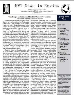 As the general debate continues throughout the first week, civil society will demand more support for a Nuclear Weapons Convention, more concrete contributions to nuclear disarmament, and more efforts to make this Review Conference a credible and sustainable success.