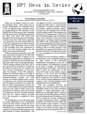 It is indeed now up to the NNWS—the states that neither possess nuclear weapons nor rely on them in security doctrines or shelter under a nuclear umbrella—to truly create the conditions for a nuclear weapon free world by insisting on the preservation of all concrete and progressive elements in the MCI and SBI texts. The texts as they stand already represent a carefully balanced compromise that arguably gives up too much leeway for the nuclear weapons states to forestall meaningful disarmament. If any of these additional P4 demands are met, nothing real will remain in terms of action on nuclear disarmament at this Review Conference except lofty rhetoric that serves only to disarm the hopes of the international community.
