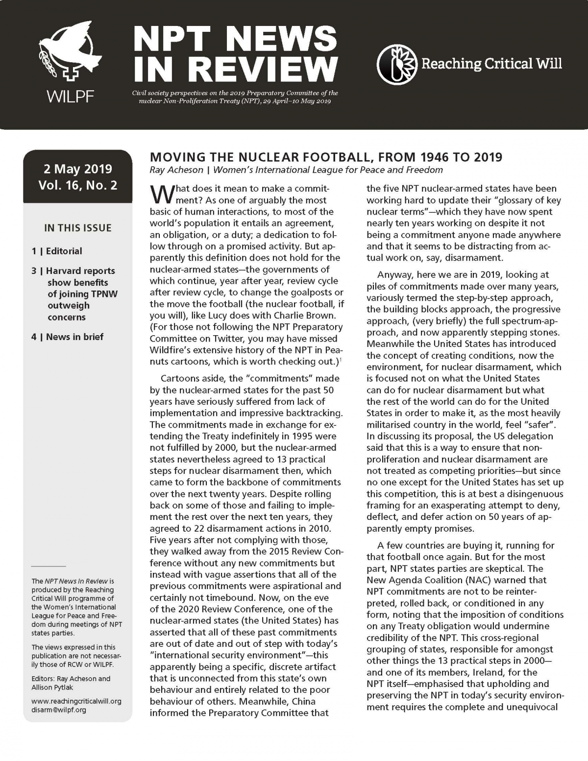 Overall, while not perfect or sufficiently far-reaching from the perspective of some governments and many activists, the draft recommendations provide a solid reflection of the majority view of NPT states parties and offer a good starting point for work at the 2020 Review Conference. What happens next year will depend on the will of governments to comply with their legal obligations and to respect international law—and to respect each other. The NPT belongs to everyone, the South African ambassador reminded the room on Thursday. “‘No’ is never a negotiating position”—certain states parties cannot operate as a small gang that gets its way while everyone else has to go along, she warned. Compromise and negotiation, not threatening Chairs of meetings and other delegations, is the only way to go.