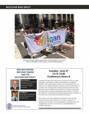 Right now, nuclear ban negotiators are waiting for the release of the revised draft treaty text from the conference President. This revised text will be the basis for the remainder of negotiations. We have eight days left to achieve a ban treaty by 7 July. Keeping in mind the physical, economic, operational context of nuclear weapons out in the world is important for shaping an effective treaty inside the conference room.