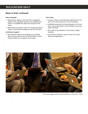 These are not comprehensive remarks or perspectives from states or from WILPF on the treaty text. More discussion is reflected in the “News in brief” article of this edition of the Nuclear Ban Daily, and more discussion is yet to come.